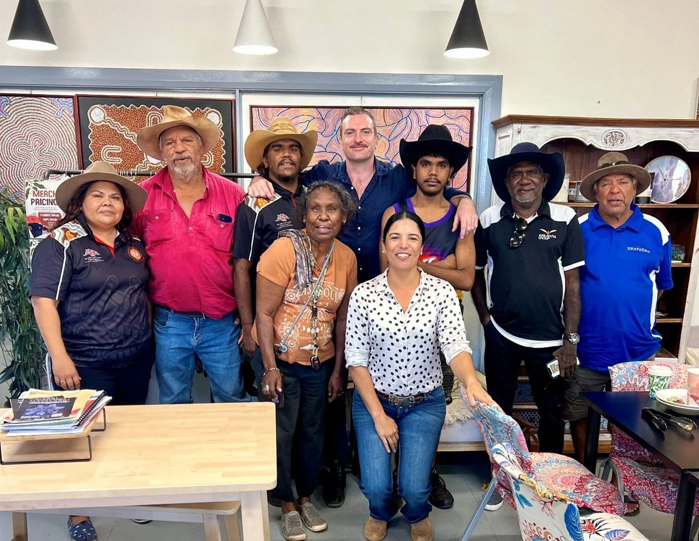 Ngarluma Yindjibarndi Foundation representatives, inlcuding emerging leaders and Elders, with Karlayura Rodeo Co-Founders and Rodeo organisers in Ieramugadu (Roebourne) May 2025